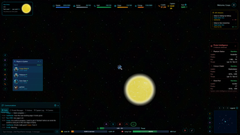 Players manually fly their ships in real time, navigate asteroid fields, engage hostile forces, mine resources, and manage production chains across stations and planets.
