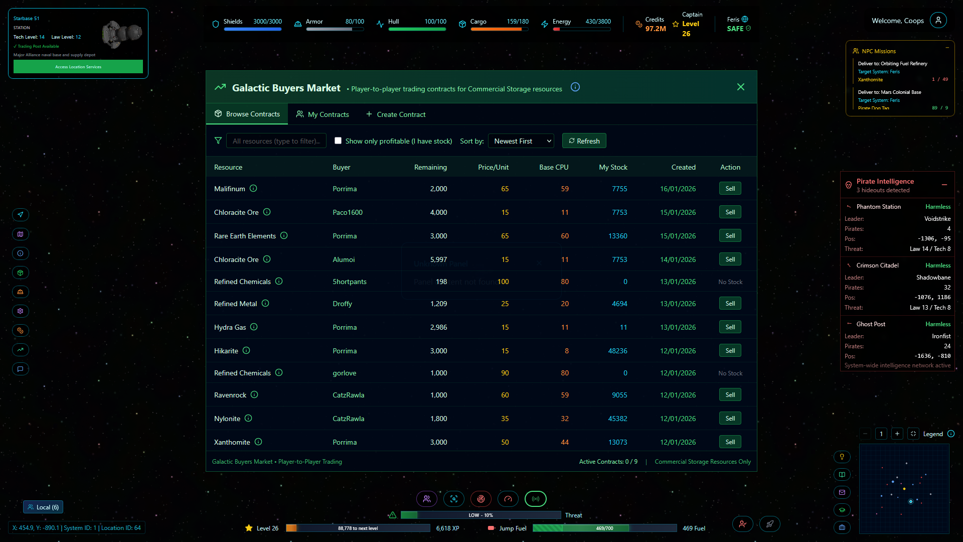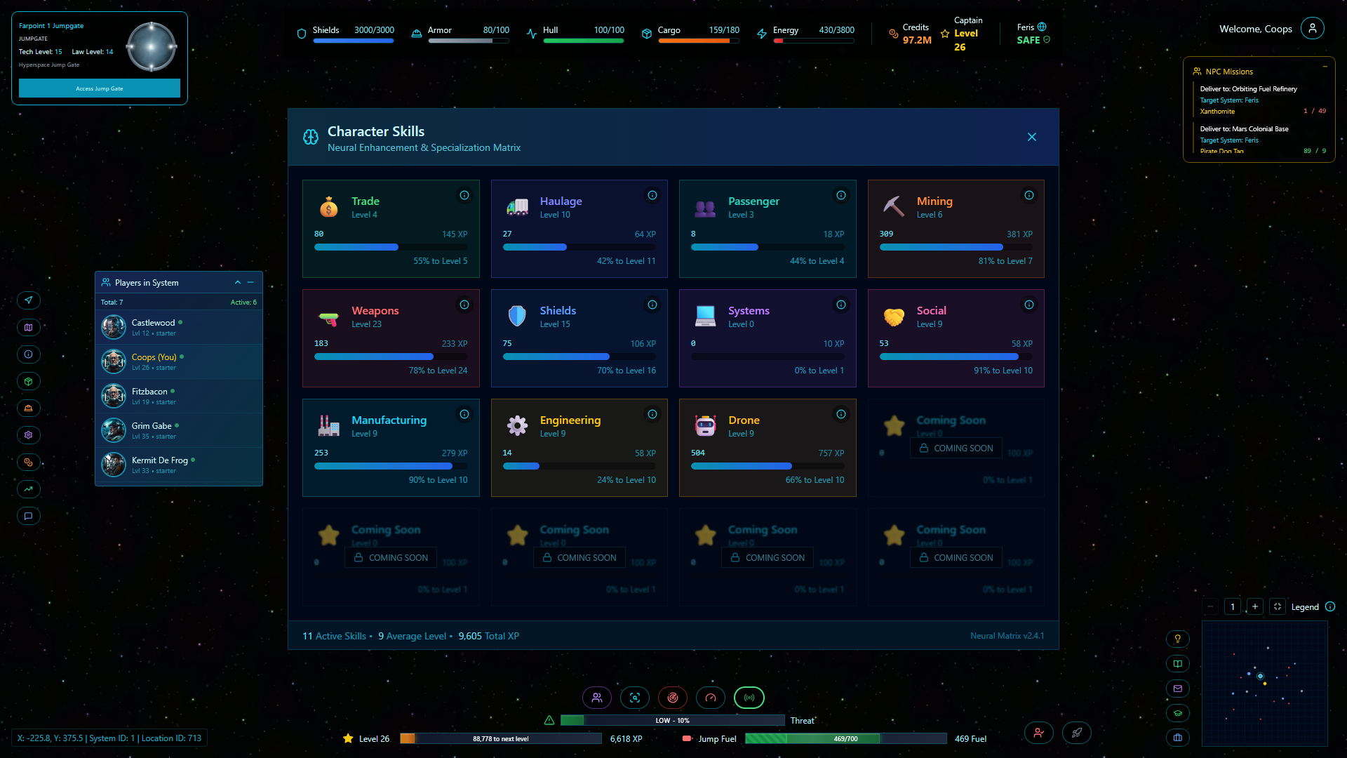 NPC missions and contracts tied to skills and reputation